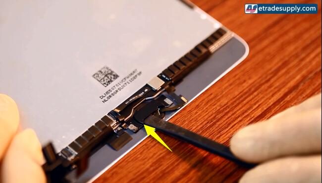 Undo the 4 screws and remove the metal cover, then pry up the two screen flex cable connectors to release the iPad Mini 4 LCD and digitizer assembly.