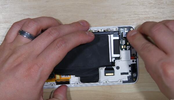 14. Put the rear housing in the slot, reassemble the Motorola Droid Turbo 2 power button and volume button before fastening the 17 screws in the rear housing.