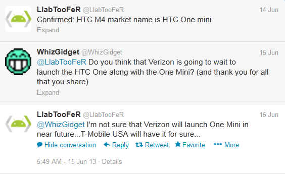 As to the release date of the HTC One Mini, it is speculated that the phone will be available around the third quarter of this year to T-Mobile USA, but not to Verizon. The information was initially posted on Twitter.